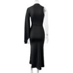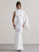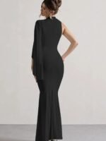 Turn heads with this sleek and sophisticated one-shoulder gown. Featuring a stylish cape sleeve. It’s perfect for formal events, parties, or special occasions. Comfortable, classy, and effortlessly good looking!