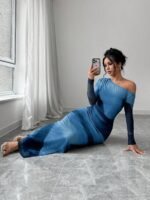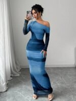 🌀 Elegant and cool-toned – this body-hugging dress with a soft gradient stands out right away. The one-shoulder design gives it a modern and stylish touch. The fabric fits nicely and highlights the figure well. It has good quality and feels comfortable – perfect for special occasions or a beautiful at-home photo shoot. 💙📸